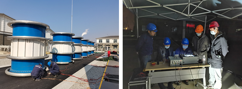 由于項目急需并網(wǎng)送電,業(yè)主要求3相耐壓試驗連續(xù)進(jìn)行,2回路海纜系統(tǒng)2天完成所有檢測工作。70kM線路,設(shè)備性能是否可以滿足連續(xù)運(yùn)行要求?在珠高檢測技術(shù)團(tuán)隊的理論計算和評估下我們決定按照業(yè)主要求進(jìn)行。在場地運(yùn)輸和吊裝受限的情況下,檢測技術(shù)人員快速完成設(shè)備就位和組裝以及調(diào)試工作。試驗過程中,除做好安全措施外,每隔20min,對設(shè)備部件進(jìn)行紅外測溫。確保設(shè)備沒有異常發(fā)熱情況。最終以1天半的時間提前完成所有檢測工作。試驗期間設(shè)備電壓穩(wěn)定,熱性能正常。得到了業(yè)主單位充分的肯定和認(rèn)可。
